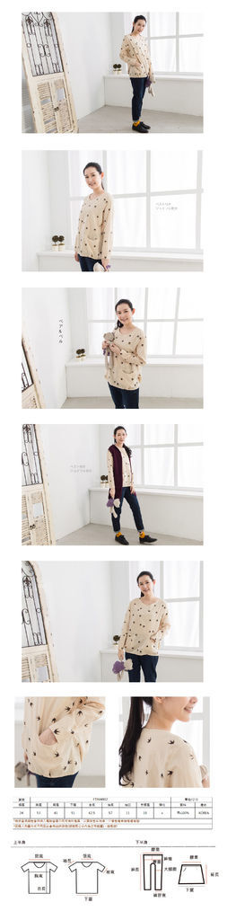 12月新款-燕子圖案棉質上衣[FTEK4802]
